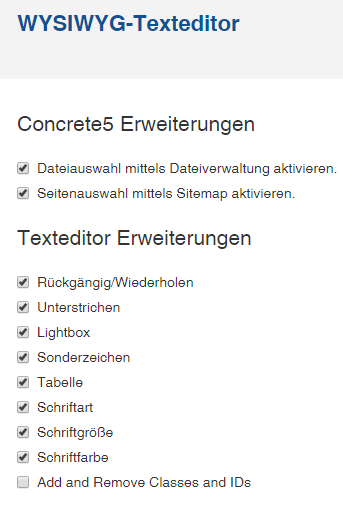 Der Standard WYSIWYG Editor in der concrete5 Version 7 ist der Redactor. Ab Version 8 wird der CKEditor eingesetzt.